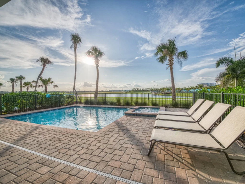 The paved patio is perfect for sunset drinks (Margarita anyone?), sunbathing and relaxing by the pool with spillover spa. The lake views add to the private ambience.